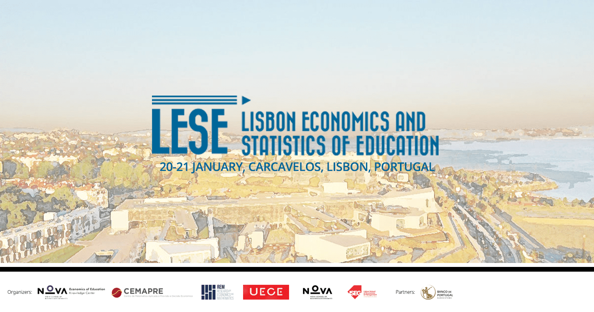 LESE, Lisbon Economics and Statistics of Education, will take place at Nova School of Business and Economics (Nova SBE), Carcavelos, Lisbon, on the 20th and 21st of January 2022.